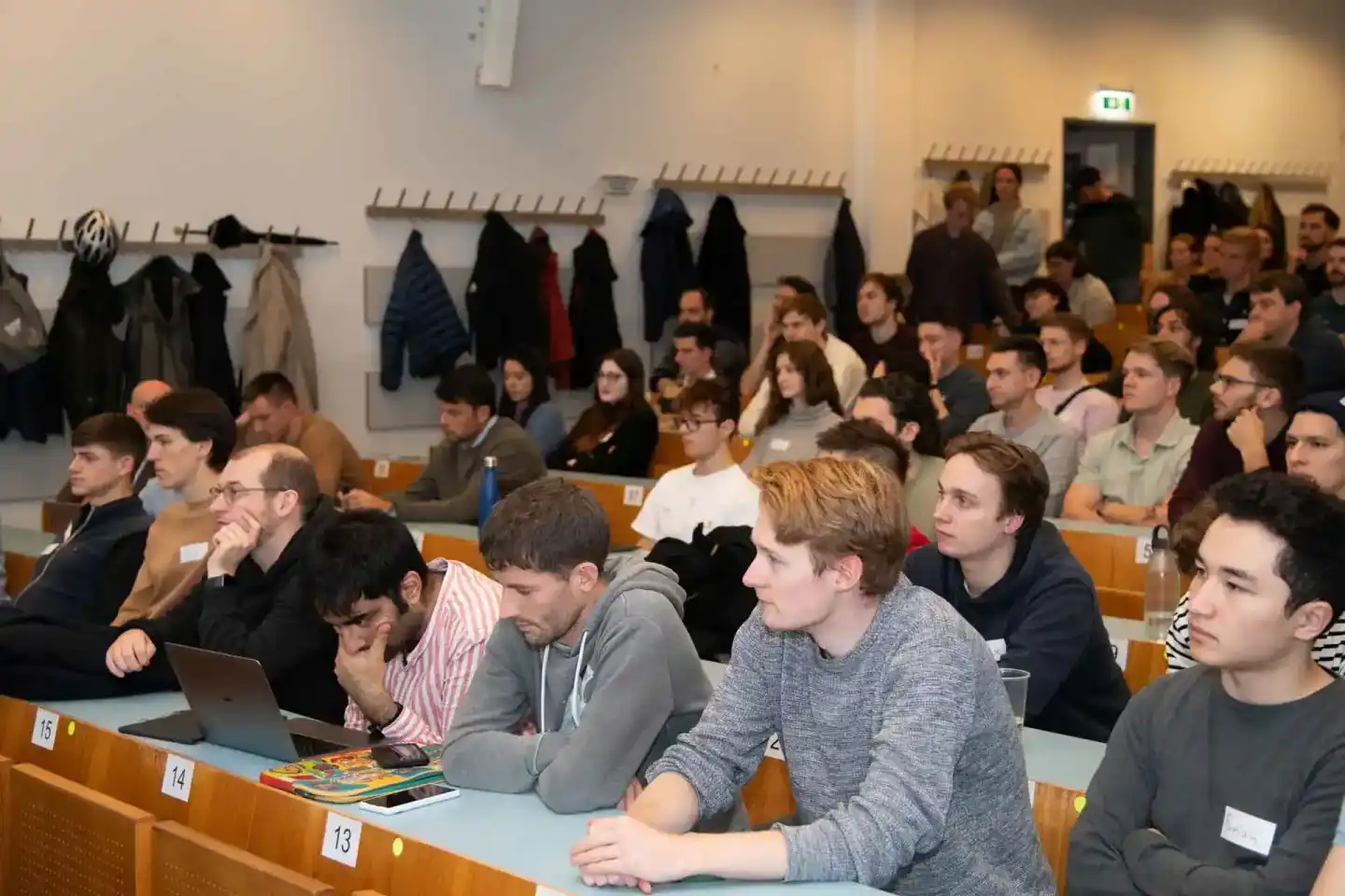 Studierende sitzen in einem Hörsaal der TU Wien und folgen aufmerksam einer Veranstaltung - Eventfotografie Wien